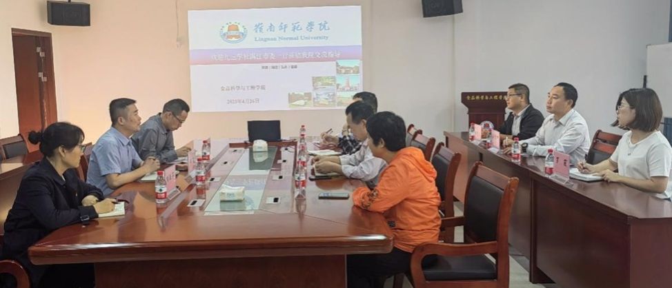 为深入学习贯彻党的二十大精神,树立大食物观,加快现代农业和餐饮业转型升级,助力湛江预制菜产业高质量发展。4月27日,九三学社湛江市委副秘书长兼办公室主任张文富带队一行七人,赴食品科学与工程学院进行预制菜研发方面调研,双方于第五教学楼B栋318室开展调研学习交流会。出席本次会议的有党委书记邱飞,副院长(主持行政全面工作)王标诗,副书记刘淑芬,会议由王标诗主持。