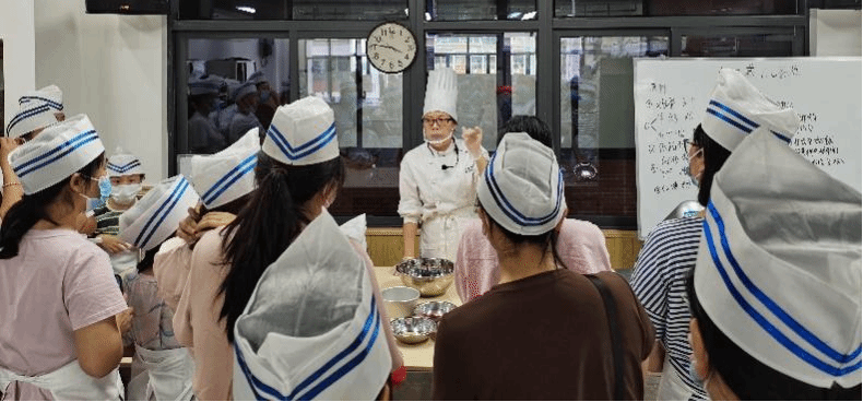 培训活动项目是制作戚风蛋糕,女教工们兴高采烈,学习热情活跃,部分老师还带上了小孩一起参与学习制作。张伍金为在场职工讲解戚风蛋糕的制作原理详细介绍了制作戚风蛋糕必备的各种材料和材料之间的搭配比例等烘焙知识,并现场示范指导蛋糕的具体制作过程;蛋糕胚制作出来后,她还教老师们学习简单的裱花技术。女教职工们每人一份原材料,亲自动手,顺利制作一个蛋糕。培训活动在欢声笑语中结束。