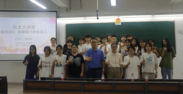 6月8日晚,食品科学与工程学院于第五教学楼A栋214室举办校友大讲堂活动。本次讲座特邀来自康源(广州)营养科技有限公司的校友骆安珠作为主讲嘉宾,与同学们分享她在食品行业的宝贵经验。副院长胡小军、辅导员苏琳及23级食品科学与工程专业的学生参加此次活动。