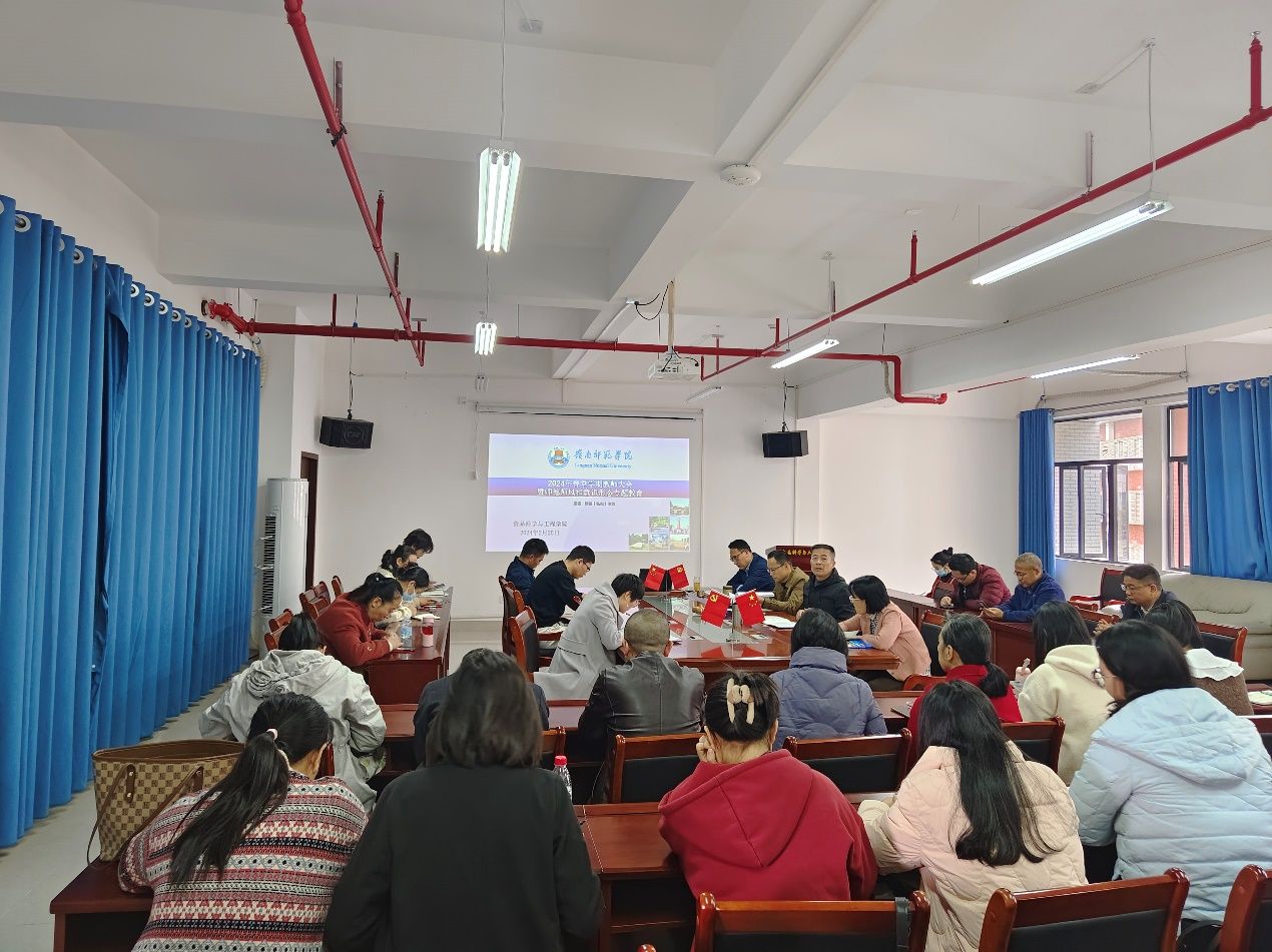2月25日上午,食品学院于第五教学楼B栋318室召开2024年春季学期教师大会暨师德师风与意识形态专题教育会,党委书记邱飞主持会议,食品学院全体教职工参会。