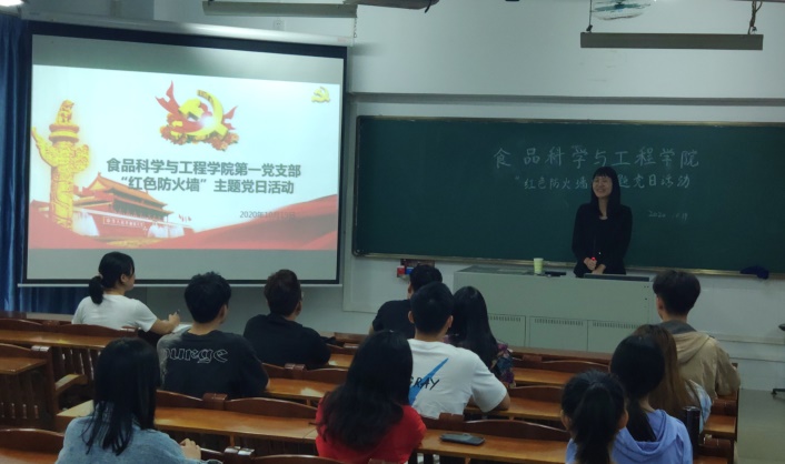 为贯彻落实党中央关于常态化疫情防控的决策部署,提高青年党员的政治觉悟,树立党员的奉献意识与服务意识,充分发挥党员先锋模范作用。10月19日下午,食品科学与工程学院学生第一党支部在燕雷楼D401召开“党旗飘扬,筑牢红色防火墙”的主题党日活动。