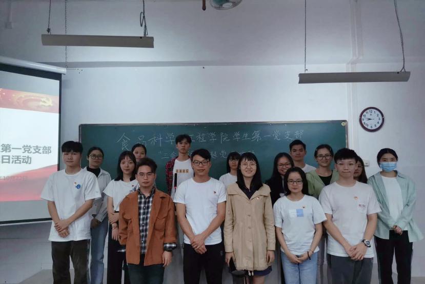 10月22日下午,食品科学与工程学院学生第一党支部在燕雷楼D102开展党日活动暨“三会一课”主题学习会,学生第一党支部全体党员参加。此次学习会由党支部书记袁嘉渝主持。