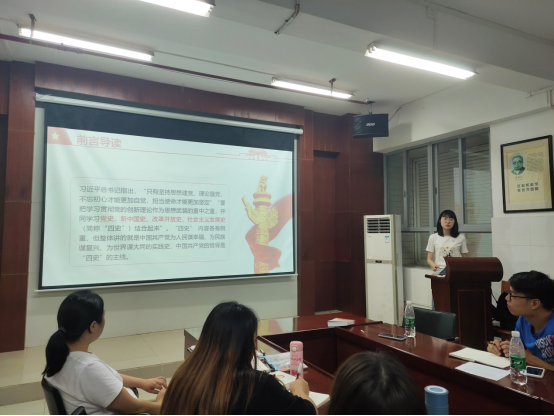会上,袁嘉渝讲授党课,她结合“四史”内涵及意义带领支部成员深入学习了党史、新中国史、改革开放史、社会主义史,强调了学习“四史”的重要性并指出了“四史”的学习要求。她希望全体党员积极参与党史学习,发挥党员的先锋模范作用,做到学史明理、学史增信、学史崇德、学史力行,争做社会主义合格接班人。