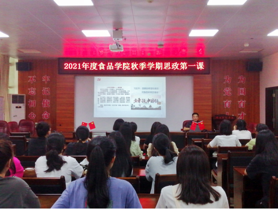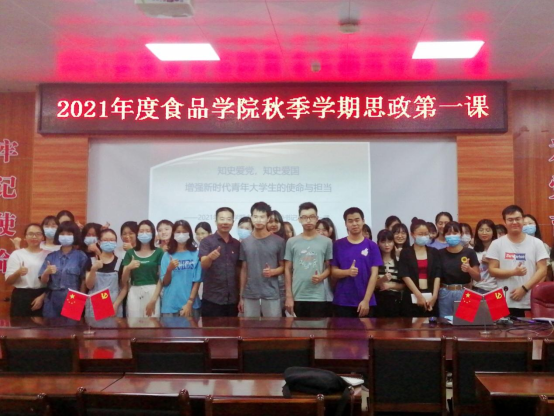 9月25日下午,食品科学与工程学院党委书记邱飞在体育馆会议室为学院六大机构学生干部讲授“知史爱党,知史爱国,增强新时代青年大学生的使命与担当”主题思政第一课,带领同学们深入学习中共党史、新中国史、改革开放史、社会主义发展史,通过党史学习教育,勉励广大同学不忘初心、牢记使命,立志报国,勤奋学习,将个人理想融入民族伟大复兴之中。