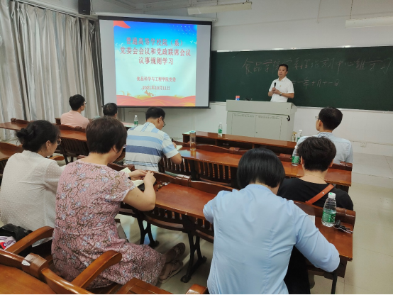 随后,为深入加强班子的建设,促进我院党政班子的科学、规范运行,邱飞他带领中心组成员深入学习了《岭南师范学院二级学院党委会议议事规则》、《岭南师范学院二级学院党政联席会议议事规则》,讲解了党委会议、党政联席会议的关系、运行及决策规则,参与人员全面了解掌握了二级学院的管理决策机构与模式。