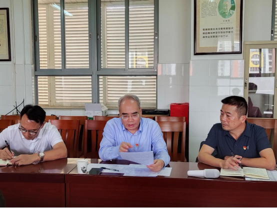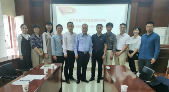 邱飞代表学院热烈欢迎学校党委巡听旁听工作组组长陈恕平主任一行莅院指导,会上围绕学习贯彻习近平总书记在纪念五四运动100周年大会上的重要讲话精神、学习宣传贯彻《中华人民共和国教育法(2021年修正)》两项议题展开深入地学习。