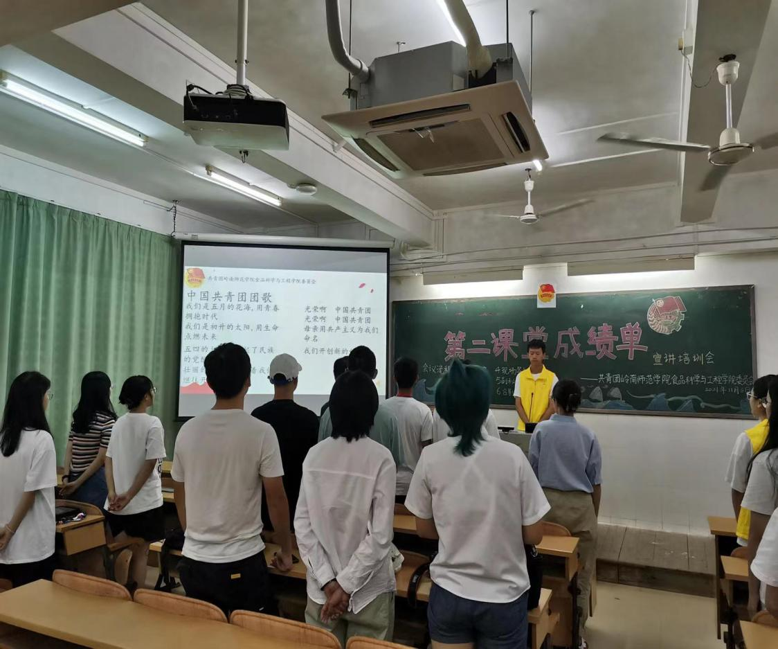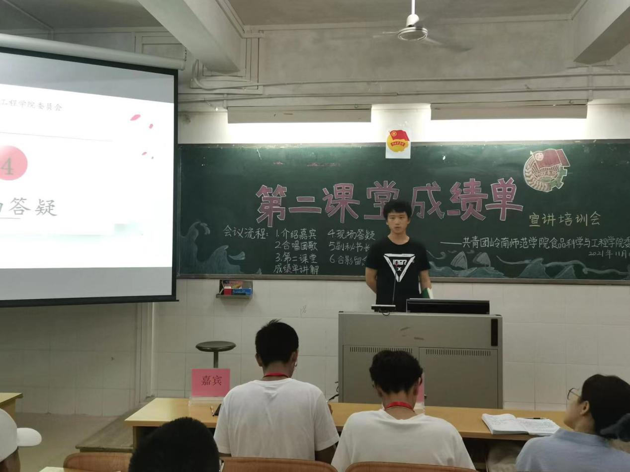 为进一步推进第二课堂成绩单的宣传工作,促进同学们对第二课堂成绩单的了解,11月6日晚,食品科学与工程学院于燕雷楼C栋413室举行第二课堂成绩单宣讲培训会。出席本次会议的嘉宾有校团委秘书处校园文化部干部黄世轩、刘思德、伍俊熙及学院团委副秘书长谢彦欣。本次会议由食品科学与工程学院团委文化部干部黄天曦主持。