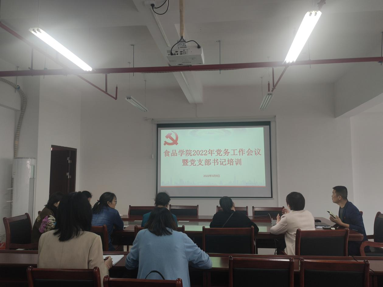 3月9日下午,食品学院于第五教学楼B318室召开2022年党务工作会议暨党支部书记培训会,全体党支部委员参加本次会议,会议由党委书记邱飞主持。