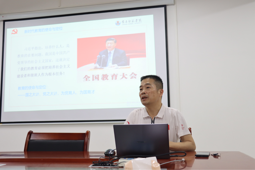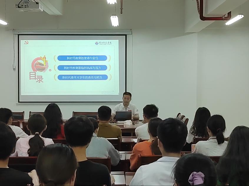 会议伊始,邱飞以2018年全国教育大会习近平总书记重要讲话精神为切入点,围绕“新时代教育的使命与定位”“教育面临的挑战与压力”“青年大学生的责任与担当”三个论点,系统阐述了教育的使命和定位是国之大计、党之大计、为党育人、为国育才,教育必须把培养社会主义建设者和接班人作为根本任务,高校需牢牢掌握意识形态的话语权,肩负起培养德智体美劳全面发展的社会主义事业建设者和接班人的重大任务。