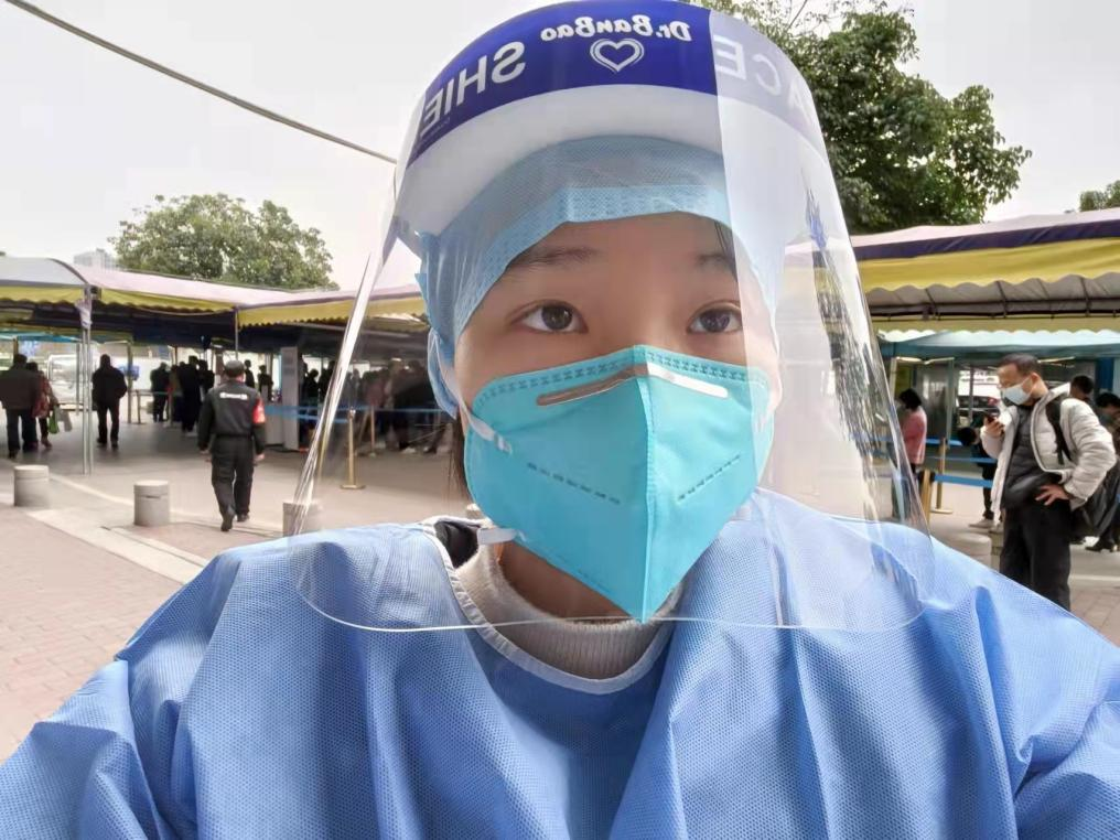 廖颖彤在大型核酸检测处普及防疫知识