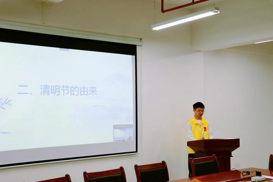 会上,团委青志导干部黄健钧通过介绍清明节的由来,引领同学们继承先烈遗志,发扬革命传统。他表示,清明节是扫墓祭祖的重要日子,既传承了中华文明的祭祀文化,也抒发了人们尊祖祭宗的道德情怀。团员代表通过观看“志愿军忠烈回国”的视频,回顾历史,重温历史,了解革命烈士的英雄事迹。从“宁可头颅断,也要争寸土”的抗美援朝老兵到“宁死不屈,一身傲骨”的革命英雄,无一不给他们留下深刻的印象,回忆过往革命前辈的辛苦历程,团员们纷纷表示,今后一定脚踏实地,开拓进取,奋斗不息。