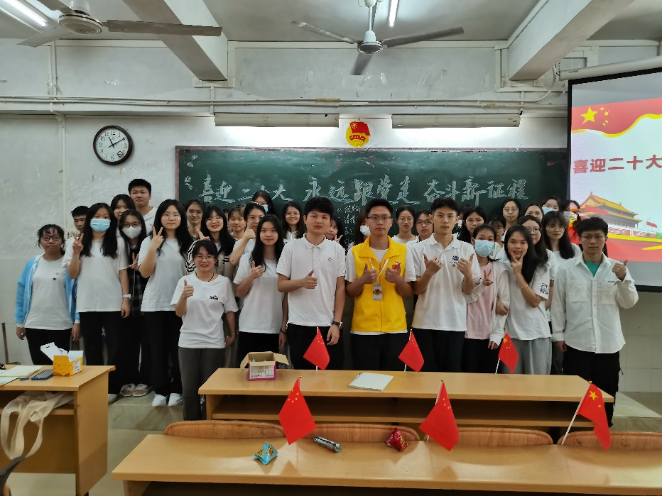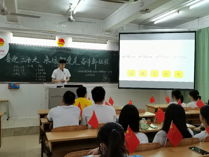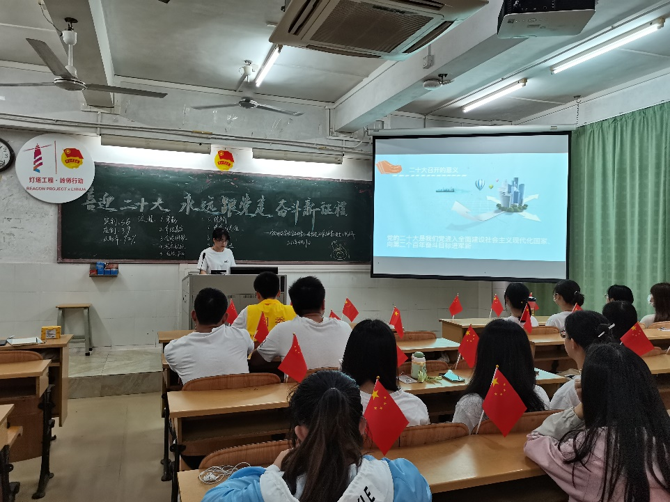 宣讲活动在20级食品质量与安全1团支部全体成员合唱团歌后正式开始。通过认真观看了奋进新征程、建功新时代、回顾党的百年奋斗历程以及党二十大主题相关视频,让同学们了解中国共产党的百年奋斗历程以及党二十大召开的重要意义。