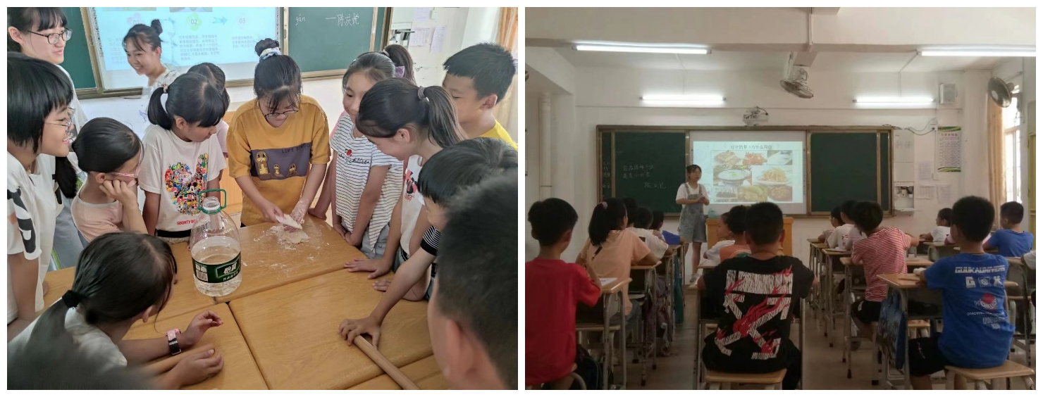 暑期“三下乡”教小朋友揉面团和给同学们上课