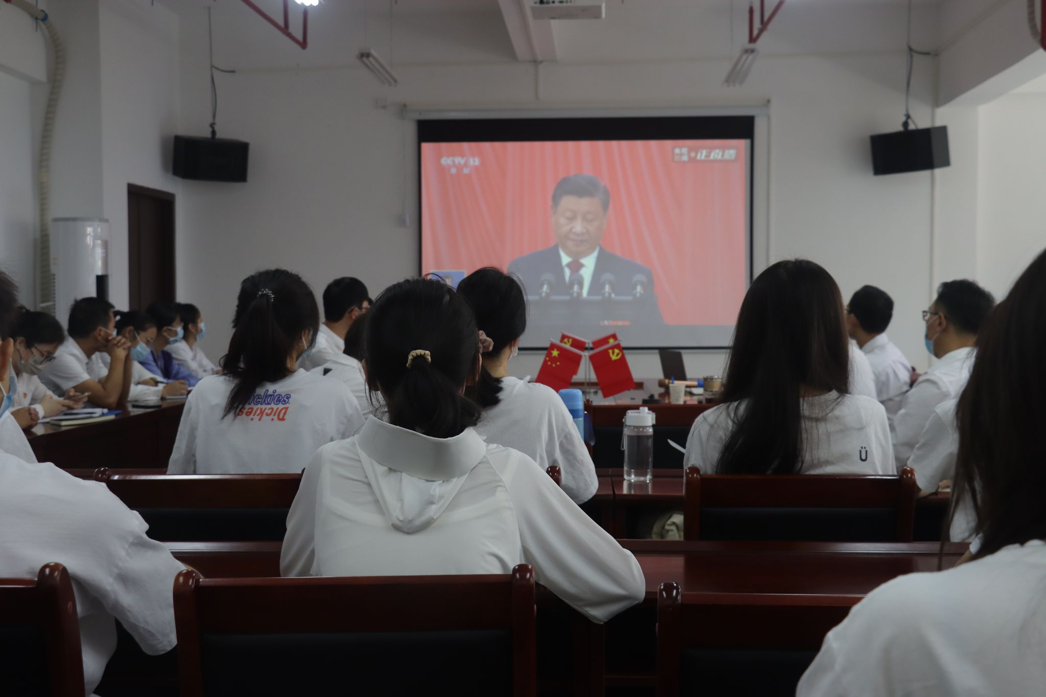 凝心聚力向复兴,团结奋斗谱新篇。10月16日上午10时整,伴随着雄壮的国歌,中国共产党第二十次全国代表大会在北京人民大会堂隆重开幕,习近平总书记代表第十九届中央委员会向党的二十大作工作报告。食品科学与工程学院党委书记邱飞,副院长王标诗(主持行政全面工作),党委副书记刘淑芬,副院长胡小军,正处级辅导员郑侯锦,各支部书记,辅导员以及学生代表齐聚第五教学楼B栋318室集中收听收看党的二十大开幕会直播,通过直播画面,大家切身感受到团结、和谐、奋进的会场气氛,聆听到会场最真切的声音。