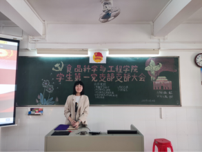 为深入学习贯彻习近平新时代中国特色社会主义思想和党的二十大精神,引导支部党员从先进典型身上吸取力量、营造崇尚先进、学习先进的浓厚氛围。3月18日下午,食品科学与工程学院学生第一党支部于燕雷楼C栋804室开展《党旗飘扬,致敬榜样》主题党课,支部书记袁嘉渝主讲本次党课。