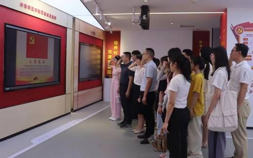 会议伊始,邱飞带领学生第一党支部党员前往图书馆参观岭南师范学院党建文化学习教育空间。在讲解员的解说下,大家一同走进该空间的序厅、学习区、成果区、休闲区和尾厅等五个区域进行体验学习,并进行党员宣誓。他们纷纷表示,学校党建文化学习教育空间是一个具有信息化和科技感的智慧党建育人阵地和学习场所,让所有人都能沉浸式、全方位地体验了党建文化学习教育空间的魅力所在,可以直观系统学习了解党史、新中国史,加强对党的深入了解和认识,进一步强化和提升师生党员的党性观念与修养。