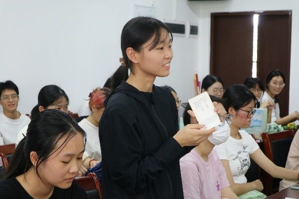 老师与同学们分别在贺卡上写下衷心祝福并进行随机交换。在书写贺卡时,有国际班同学主动献歌《明月几时有》向大家表达中秋佳节的祝愿。在志愿者分享贺卡内容时,老师与同学们纷纷诵读出自己收到的祝福语,其中许多妙语连珠,文采斐然的精彩祝语,让大家感受到中秋的温馨和祝福。