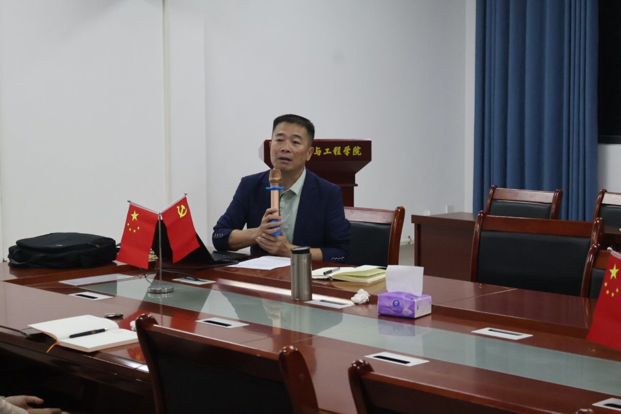 食品科学与工程学院党委书记邱飞于323日在第五教学楼B318室开展春季思政第一课,党委副书记刘淑芬、辅导员袁嘉渝、苏琳,学院六大学生工作机构同学一起听课。