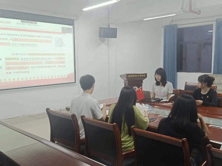 5月23日,为深入开展党纪学习教育,教育引导学生增强党性修养,将学纪,知纪,明纪,守纪内化于心外化于行。食品科学与工程学院学生第一党支部于第五教学楼B栋318室开展关于学习《中国共产党纪律处分条例》主题党课,食品学院学生第一党支部成员参加本次会议,会议由支部书记袁嘉渝主持。