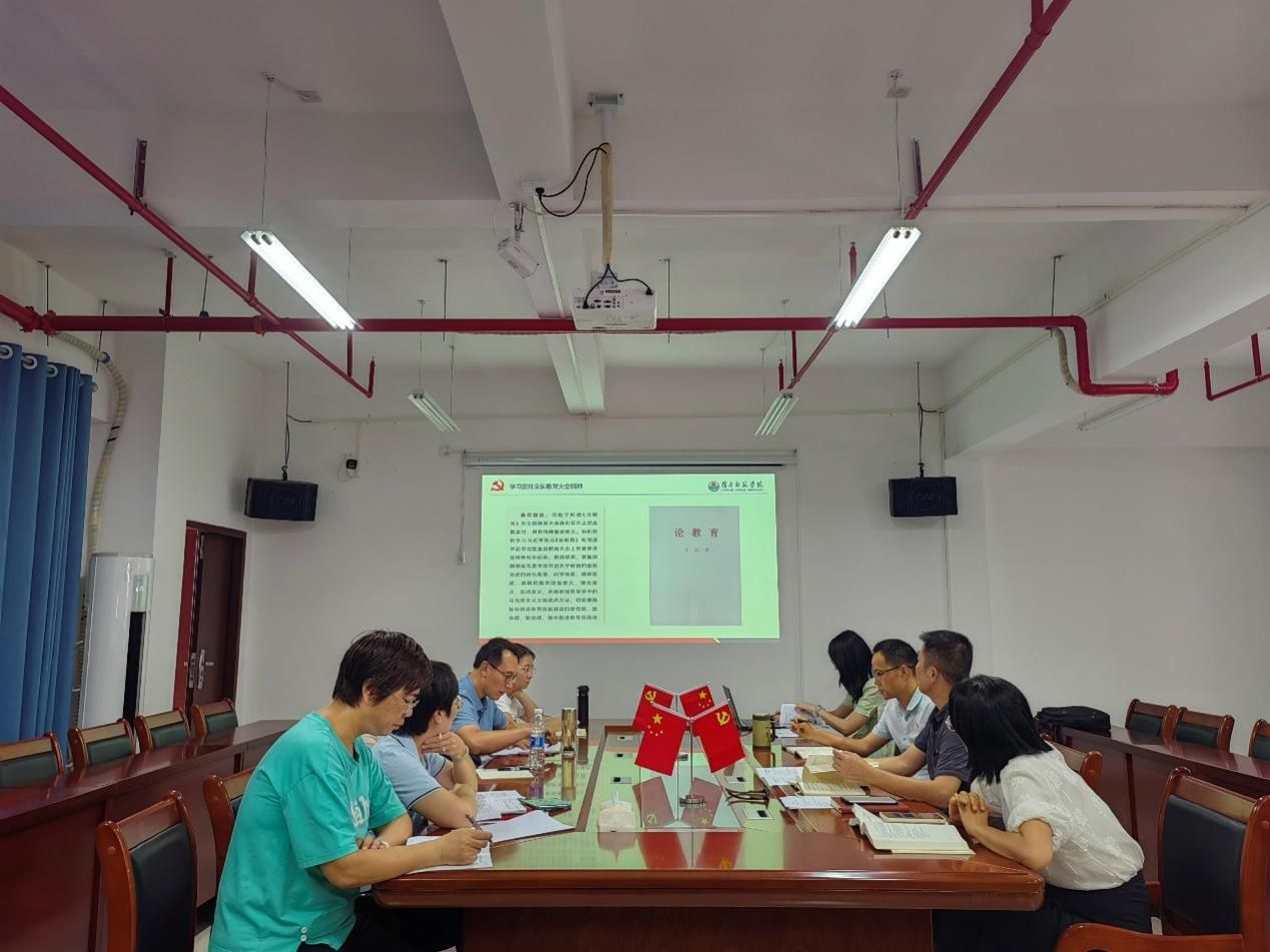 接着, 邱飞带领大家学习习近平总书记在全国教育大会重要讲话和全国教育大会精神。他指出,在推进中国式现代化新新征程上召开全国教育大会意义重大,习近平总书记在全国教育大会重要讲话是全面推进强国建设的刚领性文件和行动指南,习近平总书记强调,教育是国之大计,党之大计,要推进教育改革,加强教师队伍建设,提升教育质量,为建设教育强国贡献力量。邱飞要求,通过理论学习中心组、教职工政治理论学习、“三会一课“等多种形式全覆盖学习,深刻领会习近平总书记重要讲话精神和全国教育大会精神,全面推动立徳树人落到实处,进一步聚焦科技发展和国家战略需求,优化学科设置调整机制和人才培养模式,推动跨越式高质量发展。与会人员一致表示要深入学习全国教育大会精神,深入落实立德树人根本任务,抓好学生培养,为强国教育做贡献。