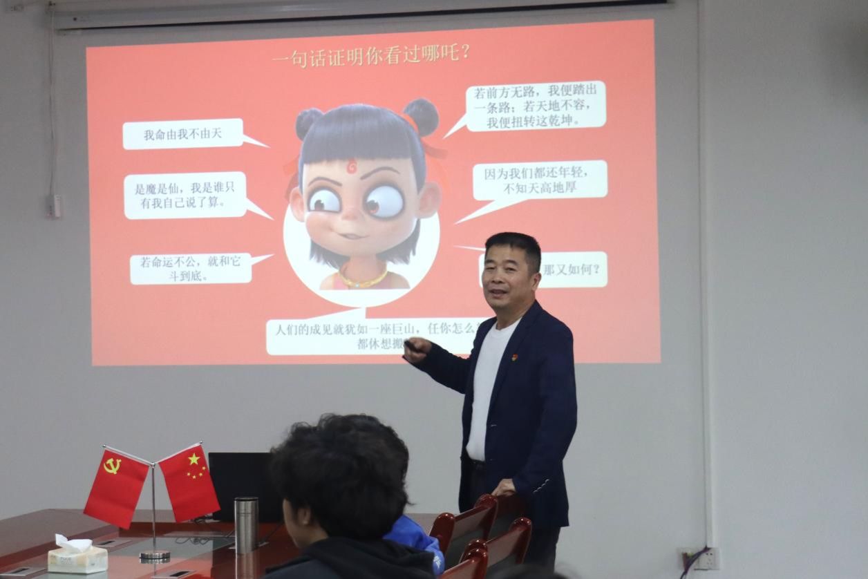 邱飞还通过影片中哪吒面对偏见、如何打破命运枷锁的勇气和行动,他鼓励同学们不要被刻板印象所定义,要努力撕掉负面标签和改变不良习惯,通过不断的努力去提升自己,将个人的奋斗融入民族复兴的历史大潮中,在强国建设中奉献青春力量。他勉励同学们要主动拥抱新时代,学习掌握新技术、新工具,用科技赋能学习。同时,要多看好电影、多读好文章,学会思考与讨论,从中汲取启发。最后,他建议同学们要积极参与活动,锻炼表达能力,敢于在公开场合发言,提升自我。