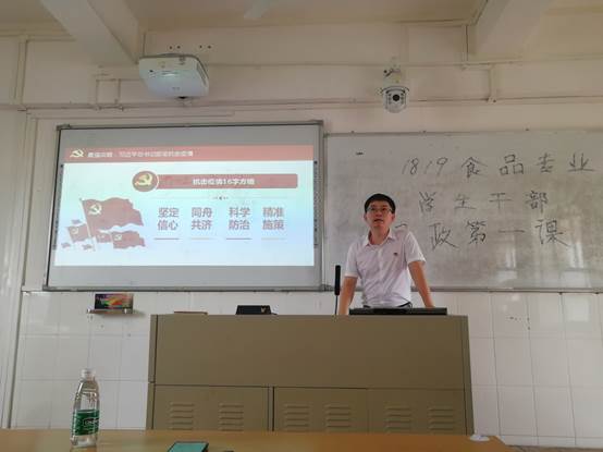 欧海清通过多维度的分析让学生干部感受到在党的领导下全民抗疫的强大凝聚力,让他们深刻认识到作为学院骨干,应在疫情防控和学习工作等各个方面起到先锋模范作用,与大家一起汲取奋进力量,以践行初心使命的实际行动,为全面打赢疫情防控阻击战做出自己的贡献。