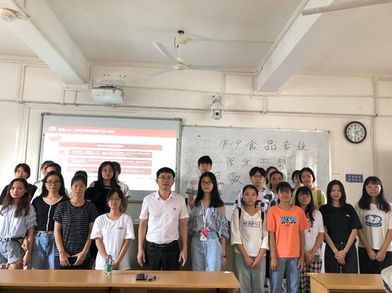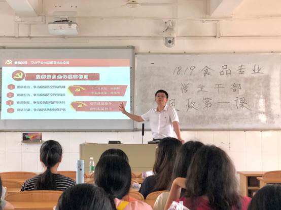 9月29日下午,食品科学与工程学院党委书记欧海清在燕雷楼C栋812室为我院学生干部作主题为“不畏艰辛,奋勇前行”的“思政第一课”。辅导员姚其元老师出席本次活动。