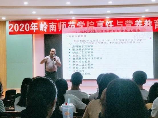 熊昌定从烹饪与营养教育专业的专业基本概述、人才培养目标和专业发展情况等方面对该专业进行了详细地介绍。他在介绍中指出,烹饪与营养教育专业发展空间巨大,我院教学资源丰富、学术氛围浓厚,师资队伍较强,有着突出的专业竞争力。