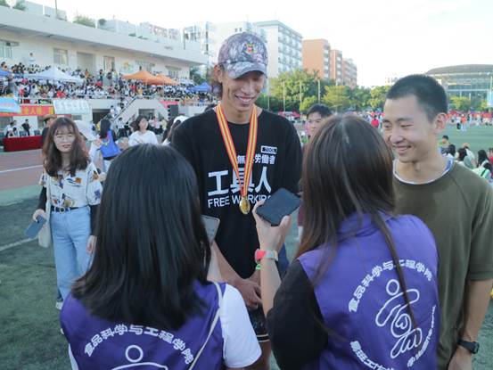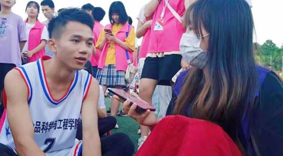 李文河表示,在训练的过程中,很感谢教练和学院负责项目的干部们,给予了他许多帮助与陪伴。此外,还有为运动员们加油的老师和学生观众,“他们的加油声、呐喊声也是我们在运动场上更加拼搏的原因和动力”。最后,他表示,为学院争光是一件很荣耀的事情,有机会继续提升自己,明年再为学院争光。