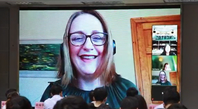 会议伊始,爱尔兰高威-梅努斯理工学院副校长凯特·诺内女士通过线上视频的形式就学校的地理位置、教学实践、课程设置、文化环境、培训项目等方面进行详细介绍,并表示,希望各位学生能在爱尔兰校园收获美好的回忆。爱尔兰高威-梅努斯理工烹饪艺术和服务业系主任杰西塔·道尔顿女士则对校园环境、课程设置、工作实习时间等细节做了详细讲述。同时,在中外师生提问环节中,两位女士还对学生所提出的有关课程时间安排、设置偏向、教学形式、校外实习等四个问题做了详细具体的回复。
