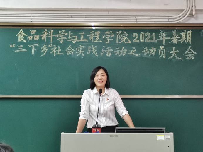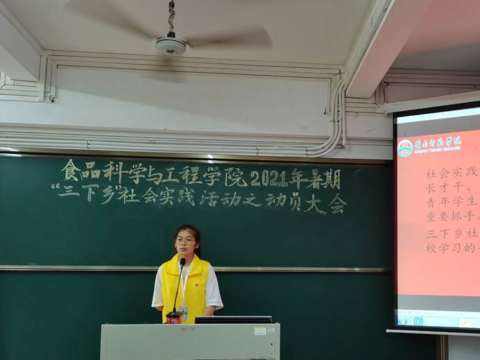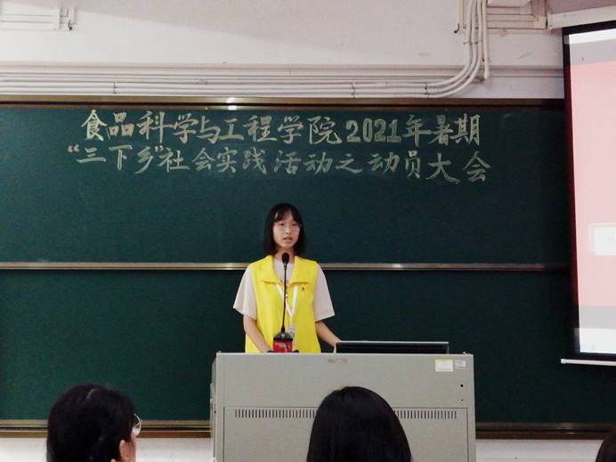 4月17日下午,食品科学与工程学院在弘雷楼703室举行2021年暑期“三下乡”社会实践活动之动员大会。学院团委指导老师姚其元、团委秘书团成员黄上梅和劳文敏、社会实践部全体干部以及20级部分学生参加了本次会议。会议由20级烹饪与营养教育国际2班杨珂主持。