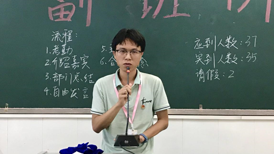 学生助学中心副职负责人苏泽林在总结发言中对副班们提出以下三点建议:一是要强化时间观念,及时与各部门干部完成对接工作;二是要明确自身责任,配合部门做好上传下达的工作;三是组建相应的贫困生交流群,建群不仅方便及时传达信息,还能督促他们认真学习的同时积极参加各项活动。最后,他提出,作为副班和部门干部,在工作中要坚持学生助学中心的宗旨:立足校园、服务社会。