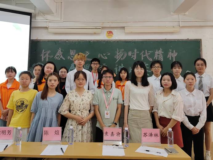 5月23日上午,食品科学与工程学院在燕雷楼C栋212室举办主题为“遇见”的感恩演讲比赛。此次比赛的主办方是食品科学与工程学院的“感恩·圆梦”义工服务队和助学中心。辅导员袁嘉渝老师、演讲与朗诵协会社陈煊、梁明芳、李倩妹三位成员,助学中心副职负责人苏泽林、助学中心勤工部部长黄翠丹、综合部干部华艺琳担任本次比赛的评委。比赛由20食安1班李艳婷主持。