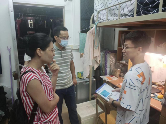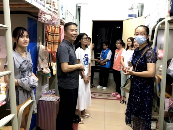 9月5日晚,食品科学与工程学院党委书记邱飞、副院长王标诗(负责行政全面工作)、副院长胡小军、烹饪与营养教育系主任马景球、食品质量与安全系主任刘淑敏、辅导员姚其元和袁嘉渝以及20级各班班主任到志道苑、新民苑等学生宿舍进行走访慰问,检查学生入住宿舍的情况并交代开学注意事项。