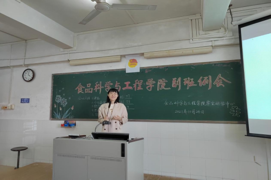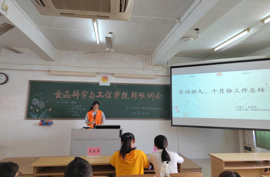 10月24日下午,食品科学与工程学院学生助学中心于燕雷楼C栋303室举行副班例会。参加本次会议的人员有食品科学与工程学院辅导员袁嘉渝、学生助学中心正职负责人经蕾及副职负责人辜雅琳、全体助学中心干部成员、各班副班。会议由21级食品质量与安全1班吴素钰主持。