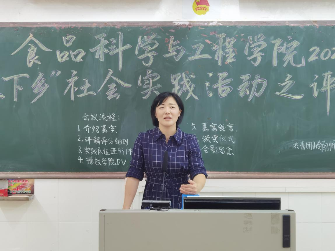 队伍展示完毕后,姚其元指出今年的社会实践较往年有很大的进步,通过结合社会现实分析了食品科学与工程学院相较其他学院的优势所在,认为还需抓住专业优势,发挥特长所在,促进实践活动的实施。在未来前进的道路中她表示有两个努力的方向,一是进一步与专业挂钩,紧密贴合,为健康中国建设添砖加瓦;二是社会层面对本专业还存在误解,依然需要不断传播专业有关知识,促进大众对食品相关专业的理解。