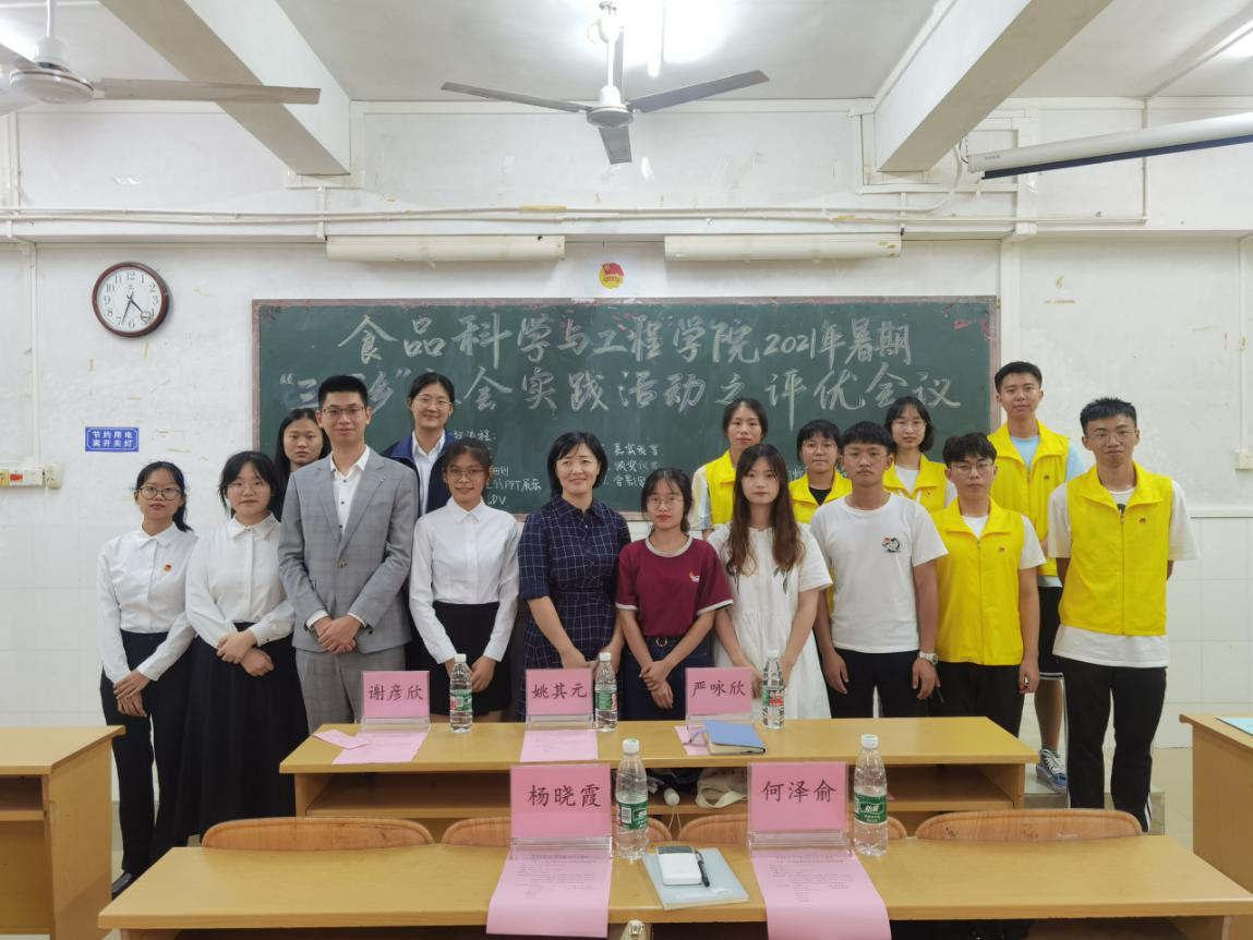 11月7日下午,食品科学与工程学院于燕雷楼C栋201室举行2021年暑期“三下乡”社会实践活动之评优会议。出席本次会议的嘉宾有辅导员姚其元、团委秘书团成员严咏欣、校团委秘书处社会实践部干部杨晓霞及何泽俞。会议由21级食品科学与工程2班林艺钊、周佩君主持。