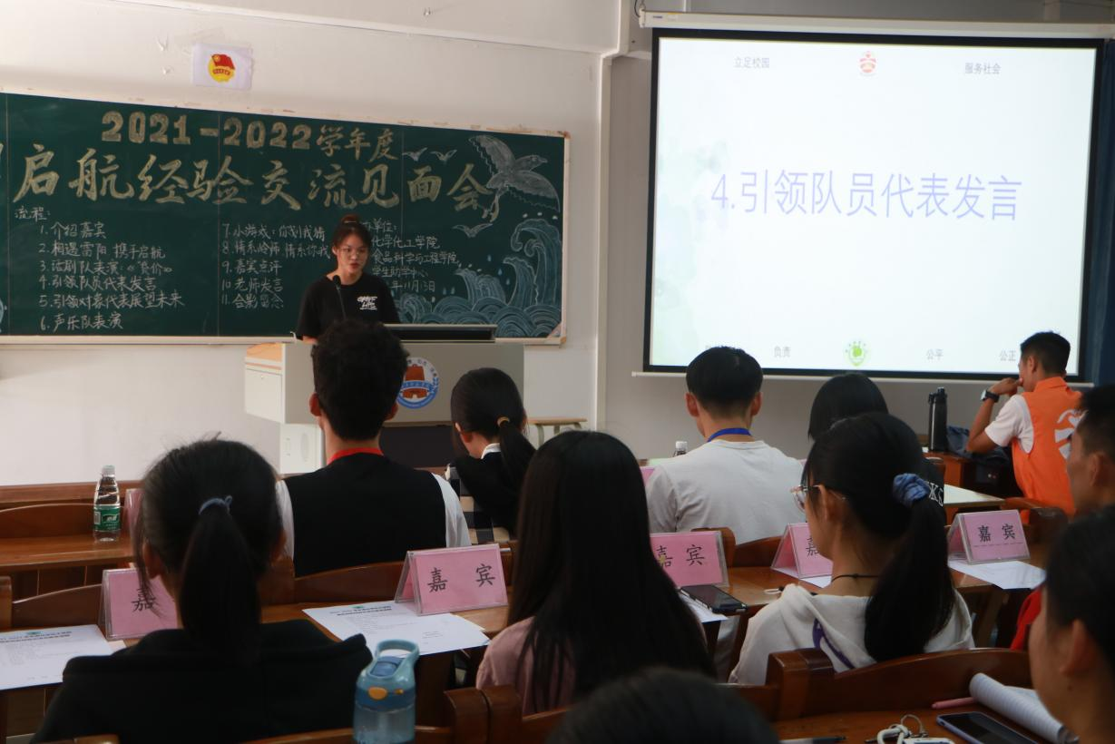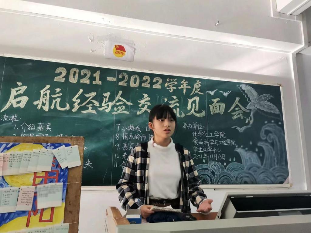 为提升资助育人成效,深入推进自强教育,引导2021级学生树立自强不息、励志成才的优秀品质。11月13日下午,食品科学与工程学院联合化学化工学院于弘雷楼305室举办雷阳启航经验交流见面会。出席本次见面会的人员有食品科学与工程学院学生助学中心副职负责人辜雅琳、校自强社干部、各引领队员及引领对象。