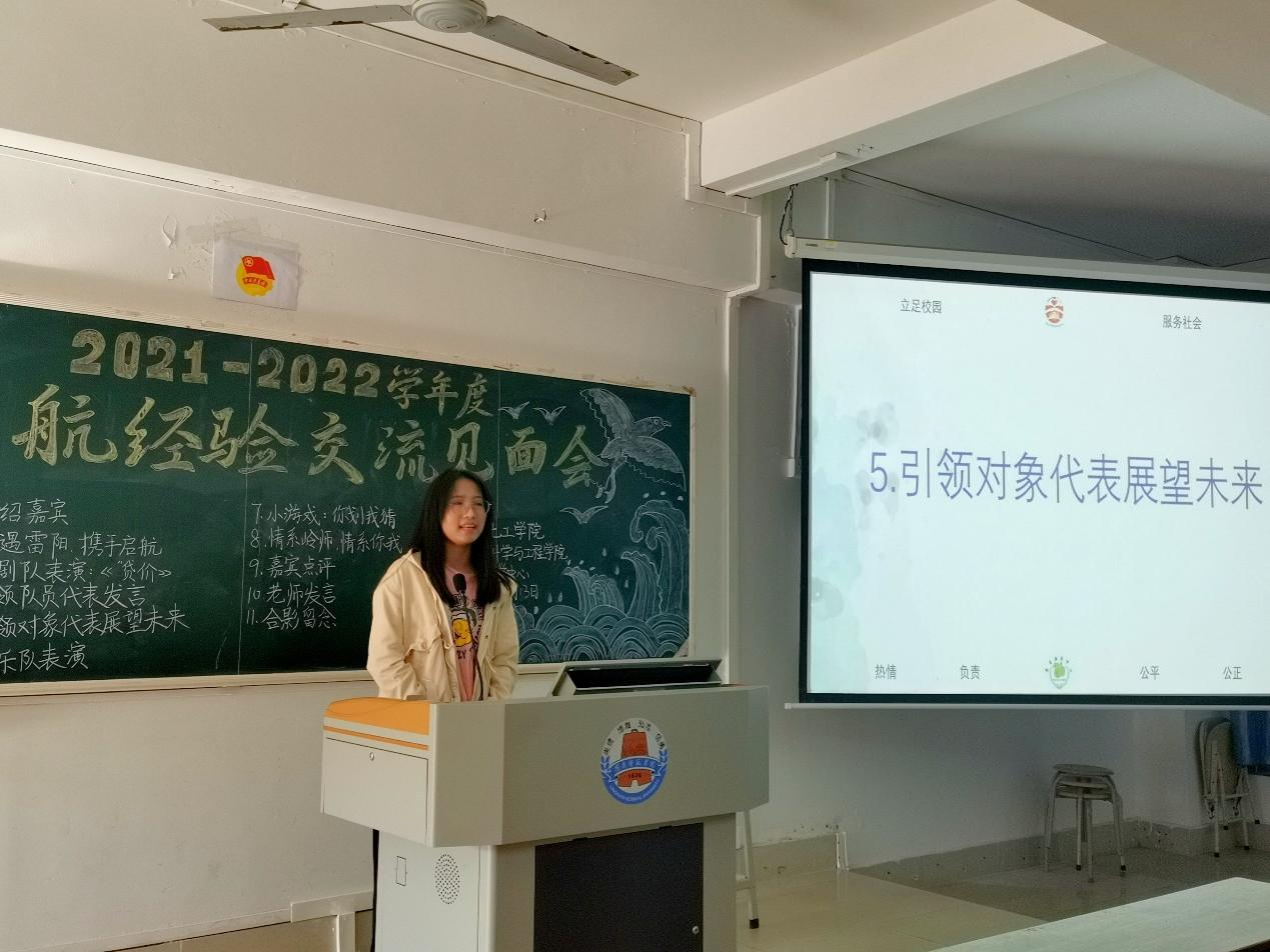 紧接着,引领对象21级赖配玉表示,大学生活陌生又迷茫,雷阳启航是一个优秀的交流学习平台,期待在这里能找到目标和方向。这是她申请成为引领对象的初衷,对未来她充满信心,希望能与成员共同进步,共同成长,见证更优秀的自己。