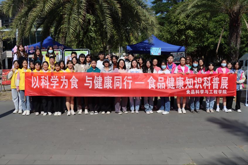 为推进学风建设,丰富学生课余文化生活,普及食品健康知识。12月5日上午,食品科学与工程学院学生会和团委联合举办、烹饪与营养协会协办的 “以科学为食,与健康同行”主题的食品科普展于体育馆前东南侧处举行,参加活动的嘉宾有食品科学与工程学院辅导员姚其元和袁嘉渝。