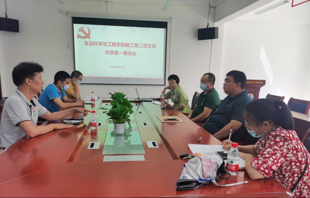 8月28日,食品科学与工程学院教工第二党支部在第五教学楼B栋318室召开“开学第一课”党员支部大会。食品科学与工程学院教工第二党支部全体成员出席本次会议。