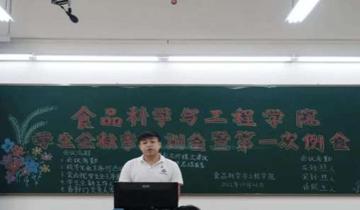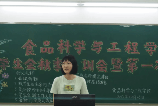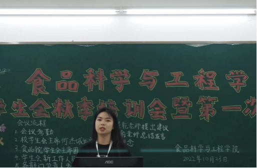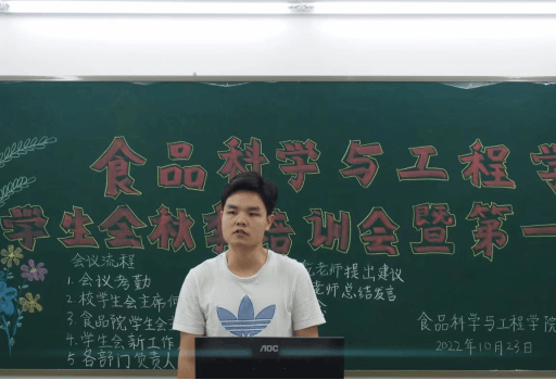 10月23日下午,食品科学与工程学院学生会于第五教学楼B栋210室举行2022年度秋季培训会暨第一次工作例会。出席本次会议的有学工办副主任、团委指导老师袁嘉渝,学生会指导老师林煜乾,校学生会主席团成员何杰诚及学院学生会全体工作人员。