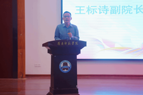 见面会上,王标诗代表全院师生对2022级新生表示热烈的欢迎,他详细介绍了学院各专业、实验室条件、师资队伍等方面的情况,表示学院高度重视人才培养,鼓励学生升学深造,考研成绩在学校名列前茅,学生就业前景广阔,得到社会的认可。他对22级新生提出四点要求:一是要学会学习,树立远大目标,做好人生规划,充分利用学校的资源,脚踏实地,努力拼搏;二是要重视体育,学习之余要加强体育锻炼,强健自身体魄,增强自身体质;三是要发扬创新精神,组建团队积极参加创新创业、学科专业技能比赛,在实践中巩固专业知识,提高专业能力,建立专业自信,掌握专业技能,勇敢面对新环境、新起点、新挑战;四是要守住食品人的初心,肩负起食品人的担当,为健康中国贡献食品人的智慧和力量。