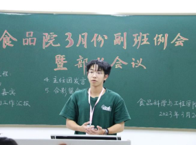 为加强食品学院学生助学中心与副班们的交流,提高工作效率,3月26日晚,食品学院助学中心于第五教学楼F栋211室召开3月份副班例会暨部长会议。学生助学中心正职负责人杨嘉敏、副职负责人蔡雨顺、陈逸陶然出席本次会议,各班级副班及助学中心全体干部参加本次例会,会议由22烹饪师范1班叶文静主持。