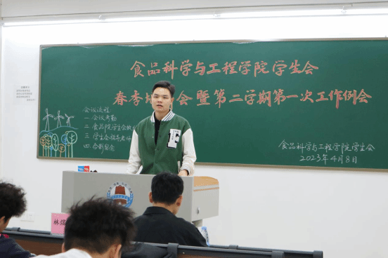 4月8日,食品科学与工程学院学生会于第五教学楼 F 栋211会议室举行学生会春季培训会暨第二学期第一次工作例会。出席本次会议的有学生会指导老师林煜乾以及学生会全体成员。会议由学习部负责人李达祥主持。