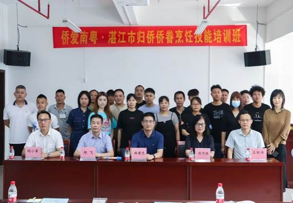 为深入落实党和国家的惠侨政策,提升我市归侨侨眷的烹饪技能,改善饮食质量,促进就业发展,由广东省归国华侨联合会主办,湛江市归国华侨联合会和岭南师范学院承办的“侨爱南粤·湛江市归侨侨眷烹饪技能培训班”于5月22日在岭南师范学院第五教学楼B栋318室举行开班仪式,广东省侨联基层建设部部长林建光、湛江市侨联符河燕主席、湛江市侨联基层建设部部长王芳,岭南师范学院食品科学与工程学院党委书记邱飞,副院长(主持全面行政工作)王标诗,党委副书记刘淑芬,副院长胡小军,烹饪与营养教育系主任马景球、副主任熊昌定等出席了开班仪式。