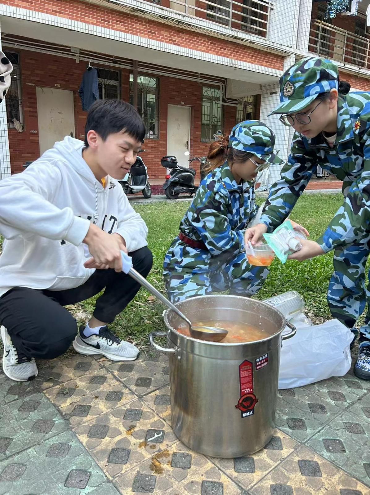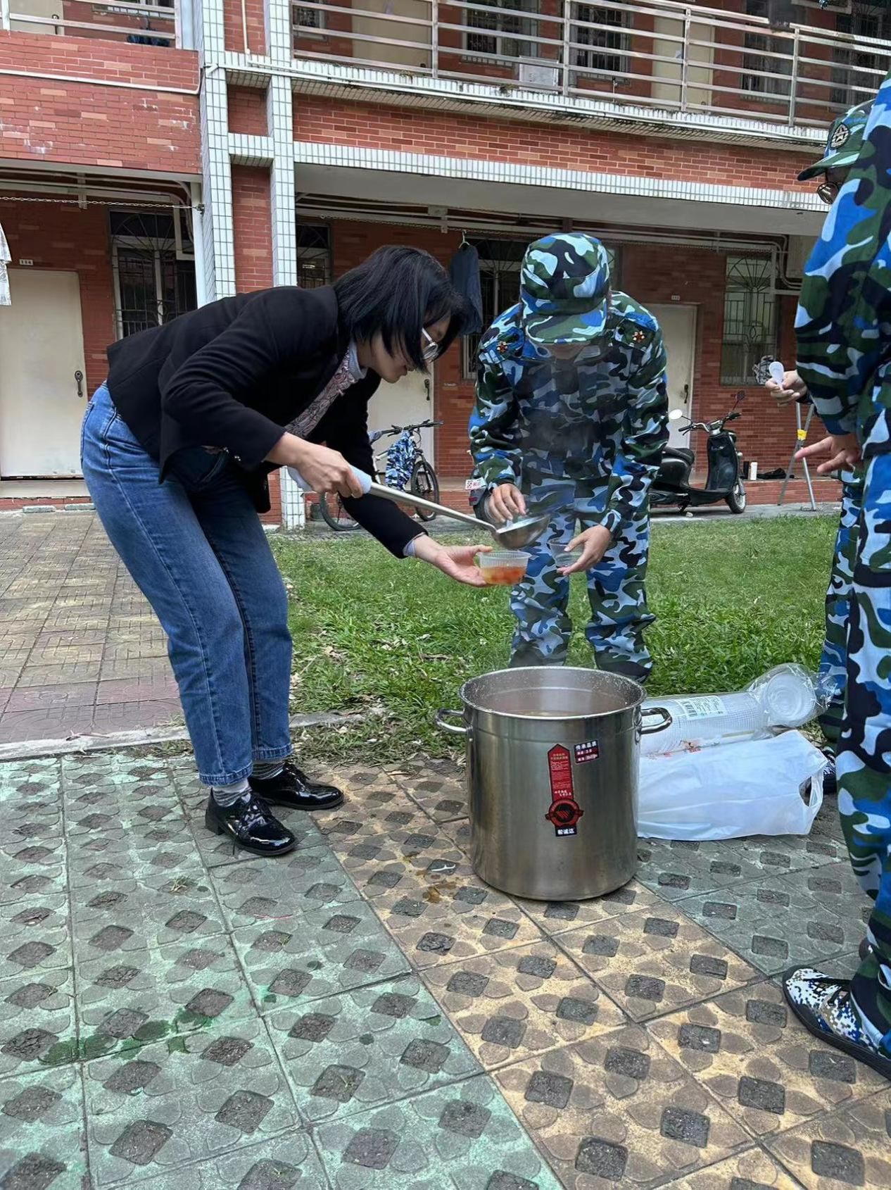 为保障同学们的身体健康,确保军训各项训练的正常进行,11月17日下午,食品科学与工程学院组织军训送温暖活动。此次活动,食品学院为2023级新生们准备了清甜可口的糖水。党委副书记刘淑芬,23级烹饪3班班主任张小琼,辅导员苏琳及助班们共同参加本次送温暖活动。刘淑芬关心和慰问学生们的军训情况,并鼓励同学们磨砺坚强意志,争做军训先锋。