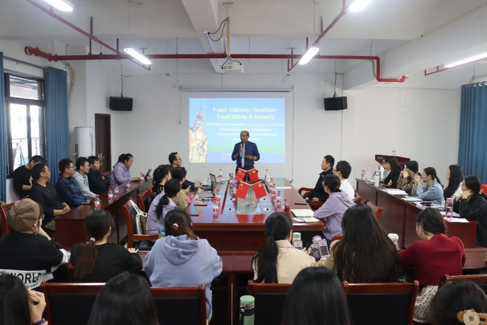 11月21日上午,食品科学与工程学院特邀新西兰Lincoln大学Ravi Gooneratne教授为师生作题为“Food : industry - Nutrition - Food Satefy &Security”的报告会,报告会于第五教学楼B栋318室举行,食品学院教师及国际班学生出席此次会议。王润东博士主持会议。
