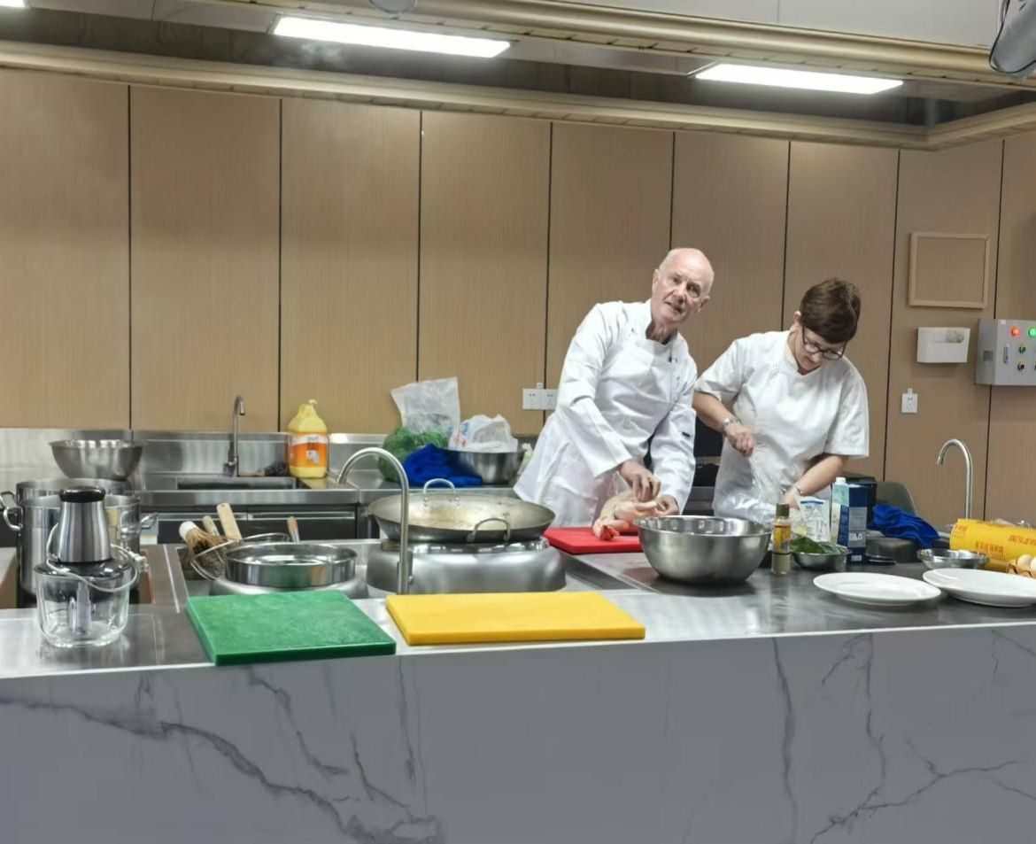 Ms. Jacinta Dalton与Mr. Martin Ruffley携手为2023级的同学们带来了一场关于西式鸡肉特色做法的精彩讲解与展示。他们深入剖析了不同地域、不同文化背景下鸡肉烹饪的多样方法与独特风味,带领同学们领略了全球美食的博大精深。在演示环节,他们细致入微地展示了切割鸡肉的专业技巧,每一步都透露出精湛的厨艺与对食材的尊重。紧接着,Ms. Anne O'Leary则引领2023级的同学们领略不同学术英语的奇妙。她以耐心而细致的讲解,逐一阐述了每一个词汇的深刻含义与实际应用场景,让同学们在轻松愉快的氛围中掌握了这些专业术语。Ms. Anne O'Leary还鼓励同学们在日常学习中积极运用这些词汇,将所学知识融入实践,不断提升自己的烹饪技能与专业素养。这不仅让同学们领略了西式鸡肉烹饪的无穷魅力,更激发了他们对烹饪艺术的浓厚兴趣与探索欲望。