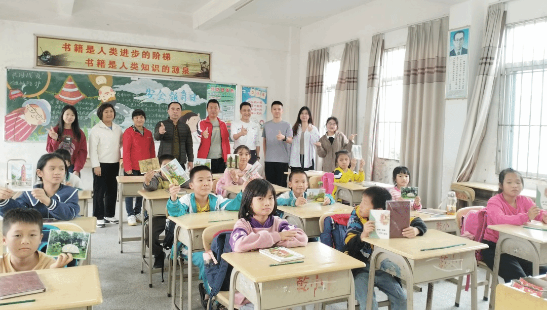 等乾留小学气喘吁吁跑上教室,商学院第四党支部同学们给他们分发带去的小礼物,每一位学生起初对收到的礼物表示好奇,随后便洋溢着幸福的笑容。